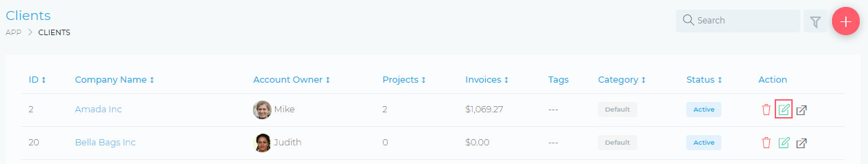To edit your client account, click on the Edit Client Icon, as shown in the image below: