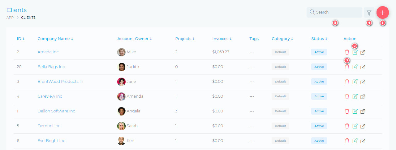 Managing your clients is very easy and intuitive. The place to start is the Client List Page.