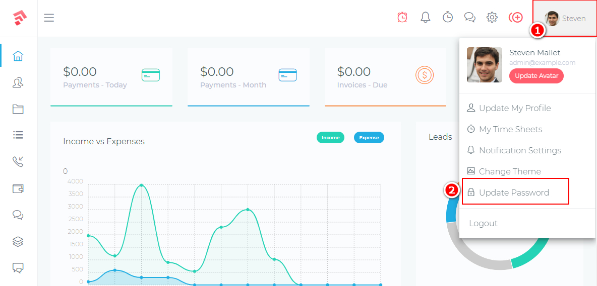 To update your password, follow the steps shown below.